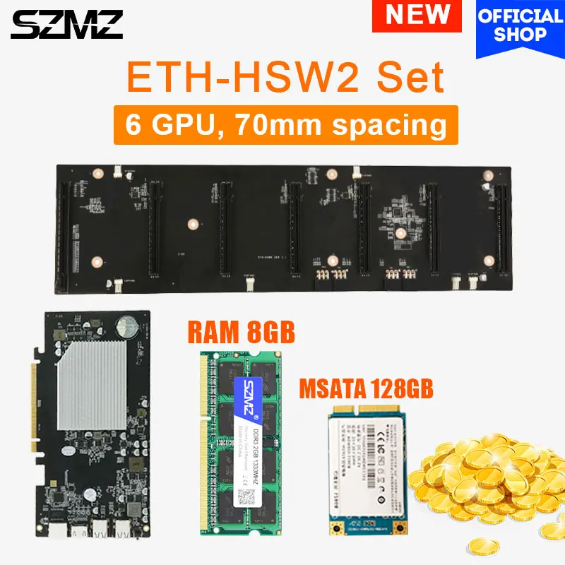 Набор материнской платы SZMZ ETH-HSW2 ETH для майнинга, 6 GPU, 70 мм расстояние, добыча криптовалюты
