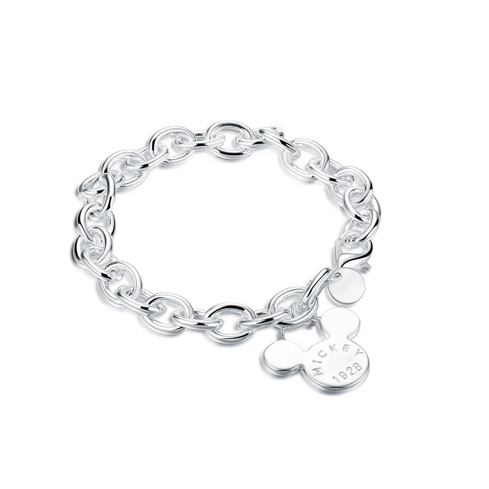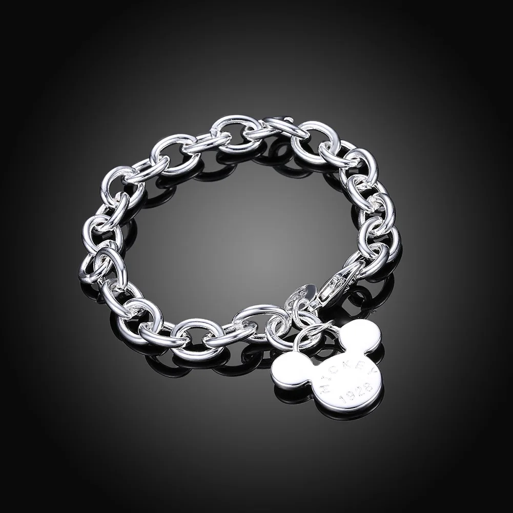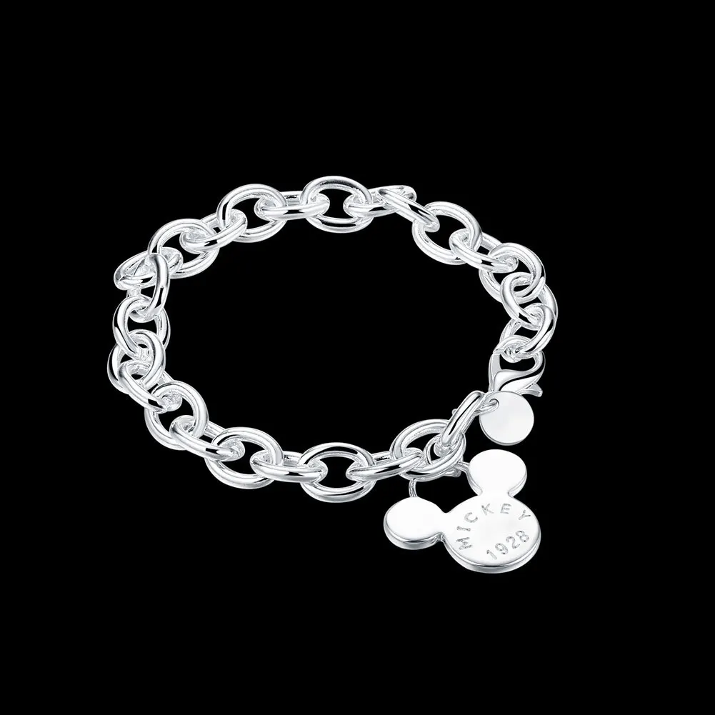 Мода 925 Серебро Милый Микки браслет с подвесками ювелирные изделия...