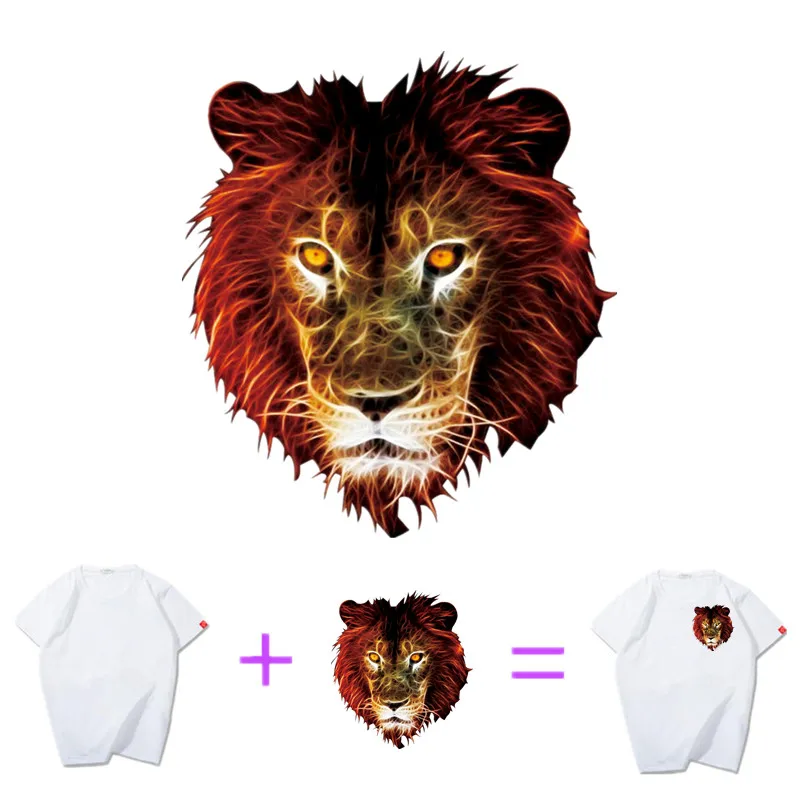 Светящиеся наклейки с изображением головы льва, светящиеся наклейки для одежды, термопечать, рисунок сделай сам, светящиеся нашивки с изображением животных
