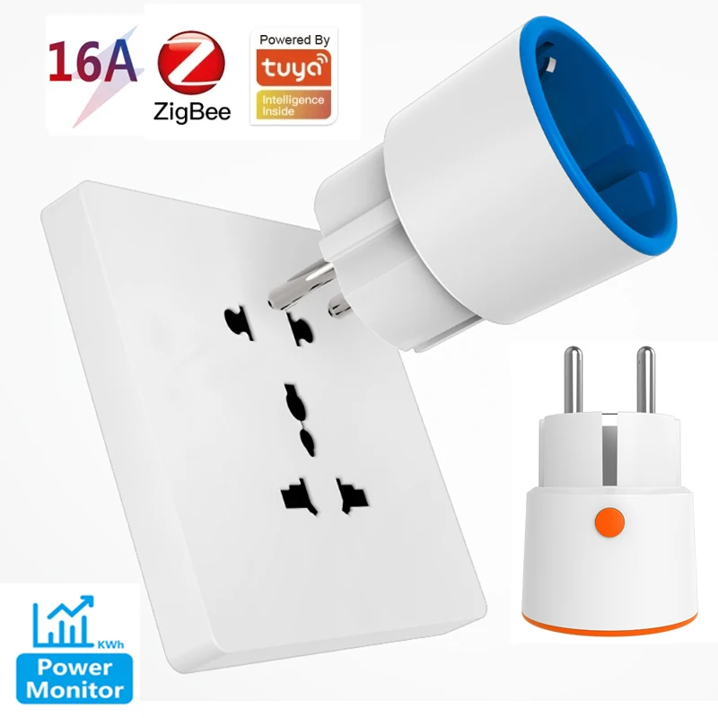 Умная розетка Tuya Smart Zigbee, Европейский разъем 16 А, с монитором мощности, совместим с Alexa Google Home Assistant, Zigbee Hub