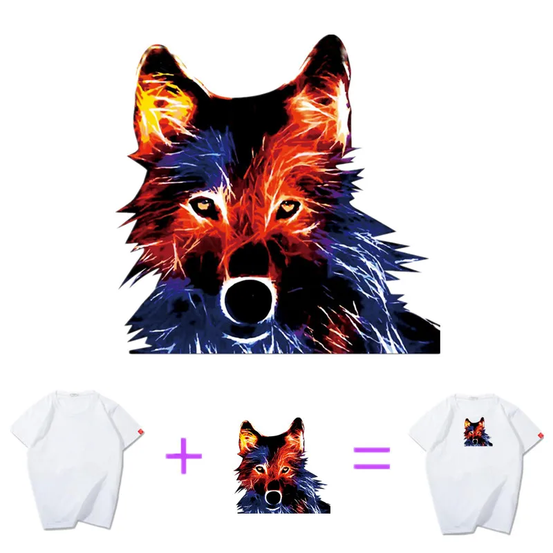 Нашивки для одежды, патчи с волчьим узором, Термотрансферная печать...
