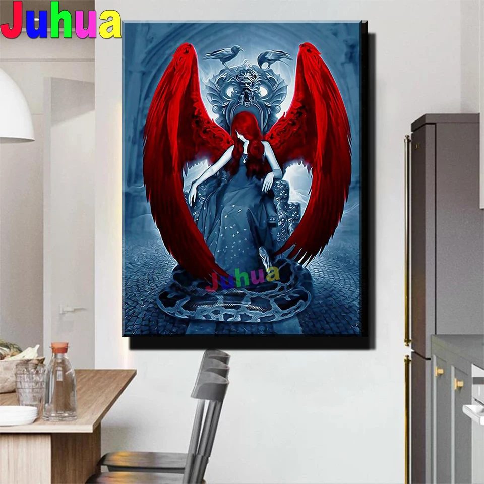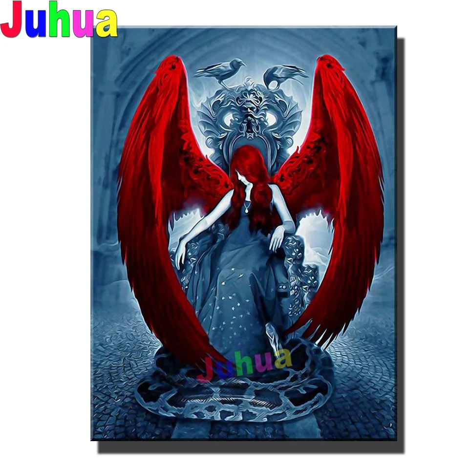 Алмазная 5D картина с красными крыльями, ангелом, дьяволом, мозаика, картина с изображением демона из серии черепа, вышивка ручной работы, хобби, фантазия, интерьер, домашнее искусство