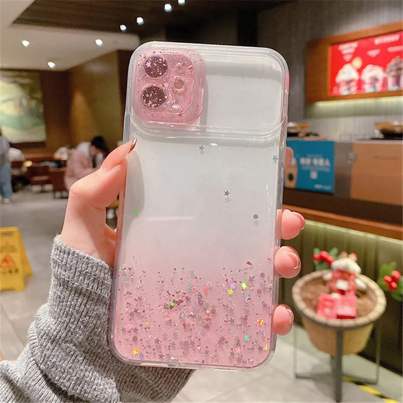 Прозрачный блестящий противоударный чехол с градиентом для телефона iPhone 13, 12, 11 Pro, XS Max, XR, X, 7, 8 Plus, мягкая защитная задняя крышка для объектива