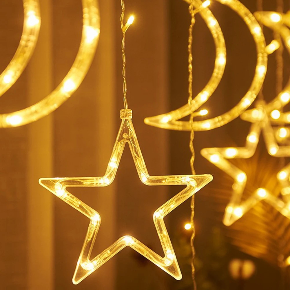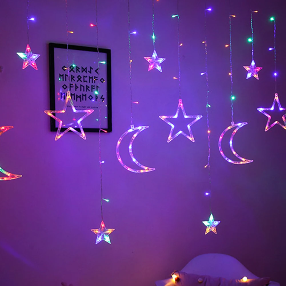 Светодиодная занавеска Звезда и Луна, 8 режимов освещения, 3,5 м
