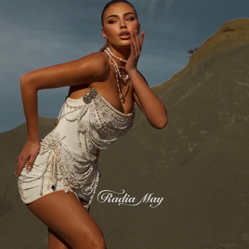 Элегантное белое короткое платье Radia May для выпускного вечера, 2022, роскошное сексуальное коктейльное платье с жемчугом для черных девушек, вечерние наряды на выпускной