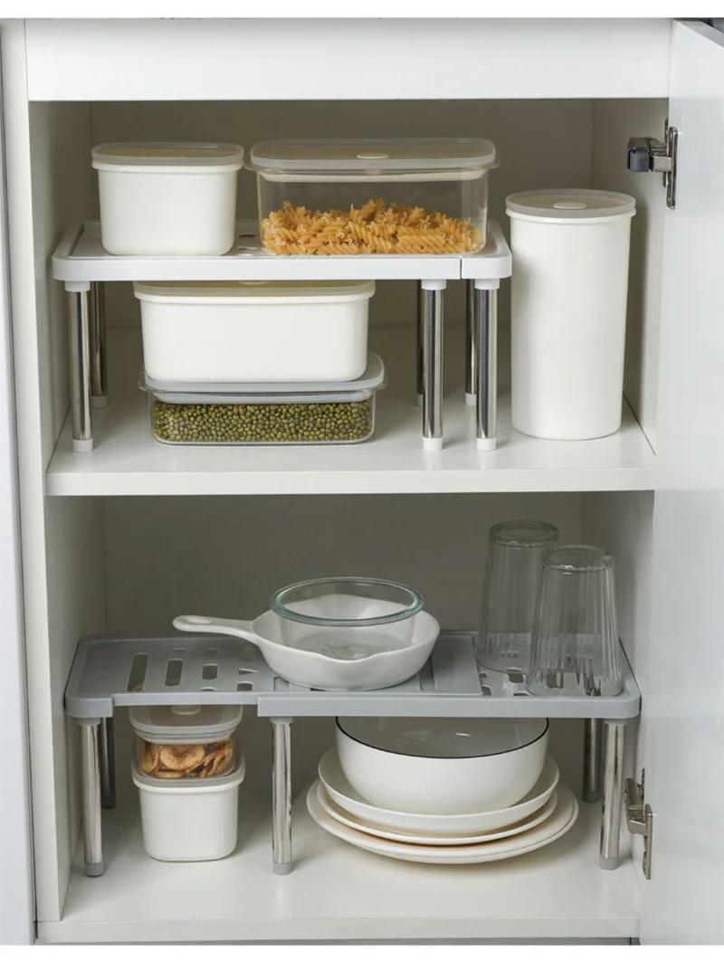 Органайзер для хранения кухонного шкафа, полка из металла, ABS, Штабелируемый, складной, для домашнего хранения, шкаф-органайзер для кухни, кухонный Органайзер, блюдо, жидкость