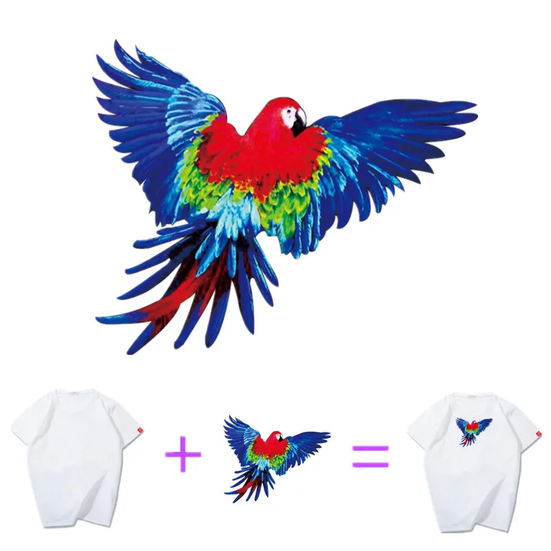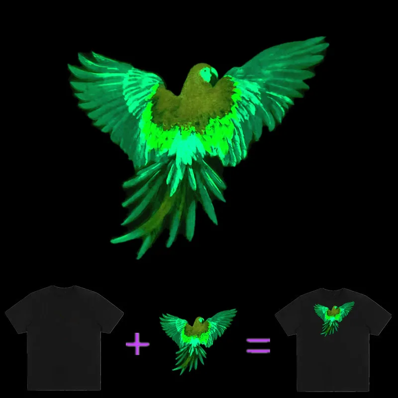 Светящиеся наклейки для одежды с изображением летучих попугаев, фосфоресцирующие наклейки для одежды, термопереводная печать, сделай сам, украшение животных, светящийся патч