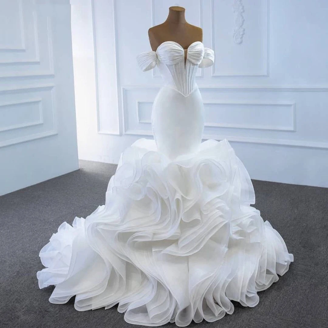 Новинка Очаровательные Белые элегантные вечерние платья русалки с открытыми плечами оборками женское свадебное платье для выпускного вечера стандартное изготовление