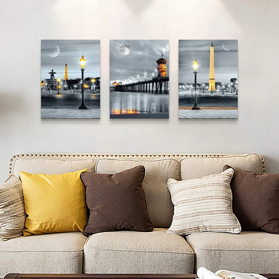 Алмазная вышивка крестиком ночной вид триптих Картины 5d алмазная вышивка 3 шт. домашний декор