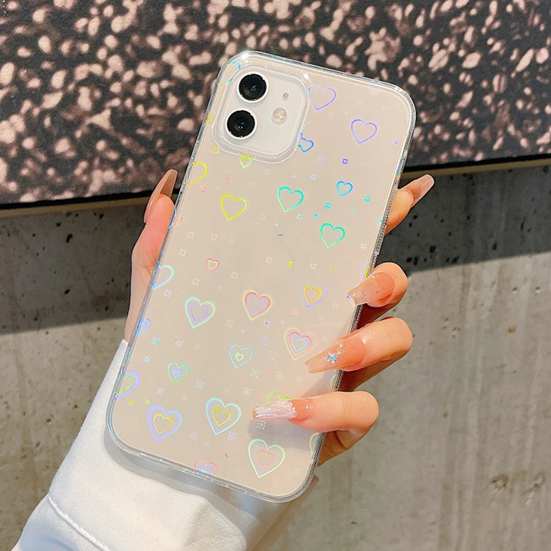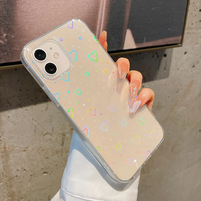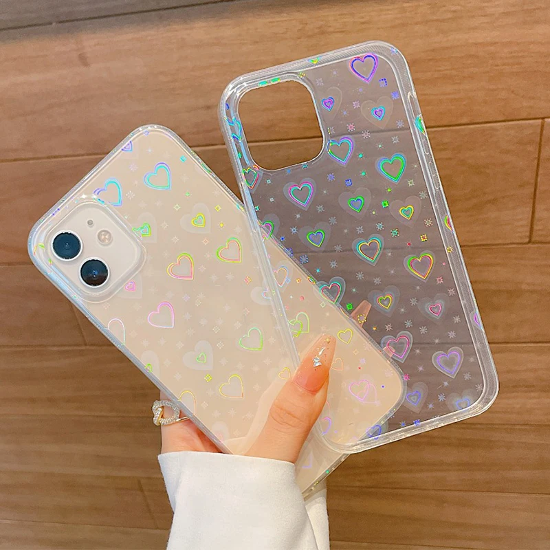 Прозрачный лазерный чехол с сердечками для телефона Samsung A32 A52 A72 A51 S21 S20 S22 Ultra S20 FE Note 20, ультраударопрочный мягкий чехол