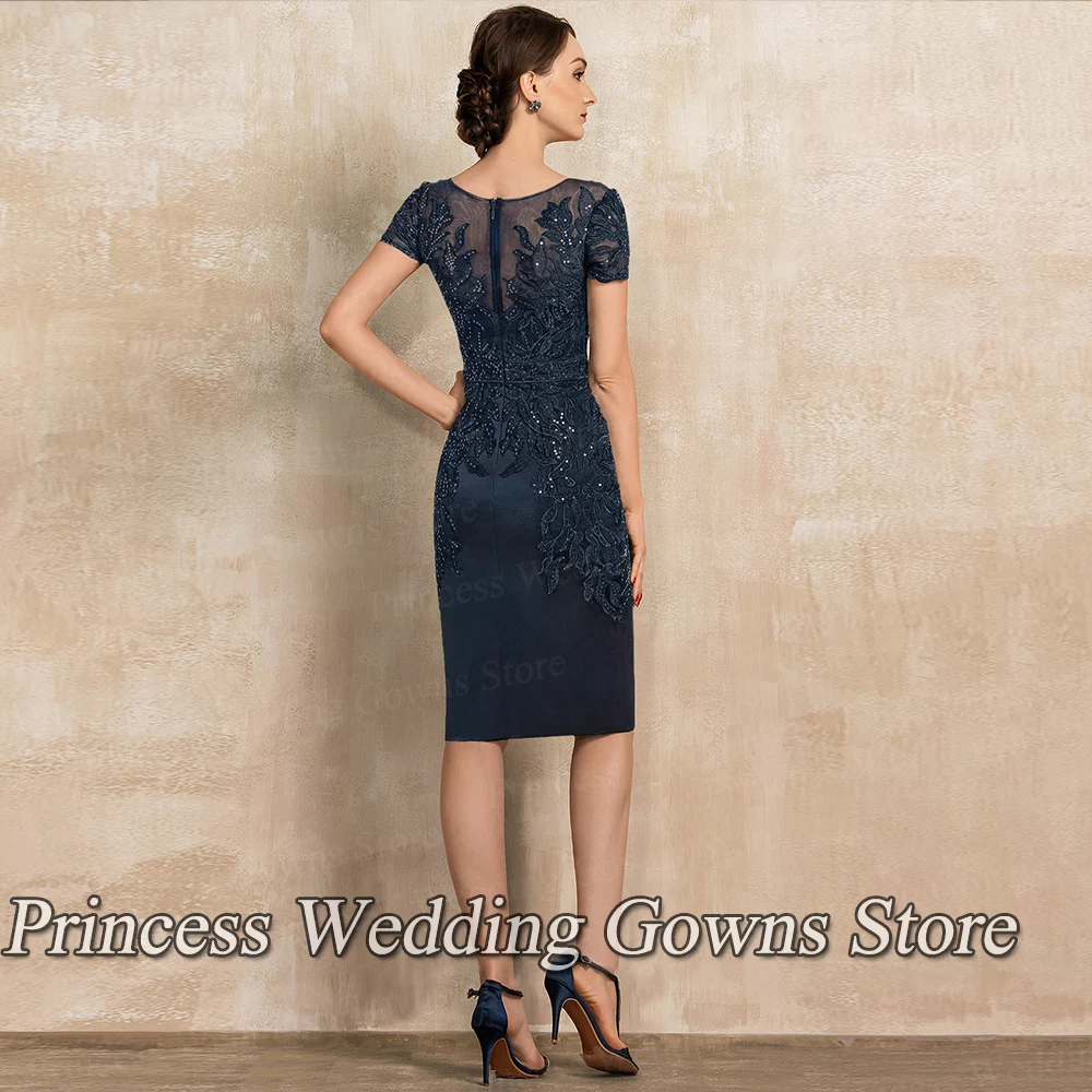Элегантное темно-синее прямое платье для матери невесты для женщин с коротким рукавом винтажное платье для матери жениха Свадебная вечеринка платье