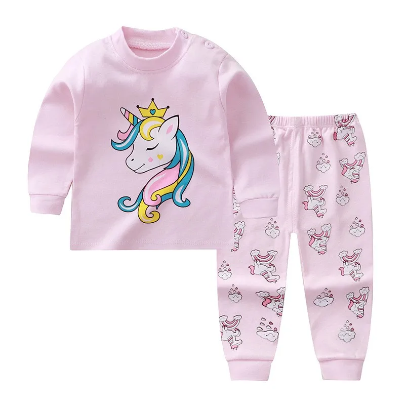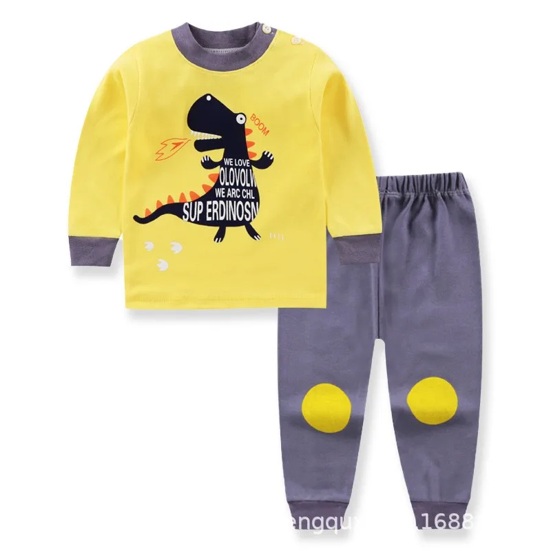 Комплект нижнего белья для младенцев 0, 1, 2, 3 лет, осенний комплект из двух предметов с длинным рукавом, детская одежда, детские пижамы из 100% хлопка с мультяшным рисунком