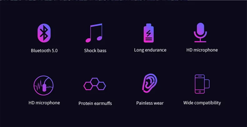 Параметры продуктаНазвание продукта: bluetooth-гарнитура T8Использование: Крепление на головуПротокол Bluetooth: 5,0Моноурал или нет: двусторонний стереоЗвуковой канал: стереоЦвет: белый, черный, синий, красный