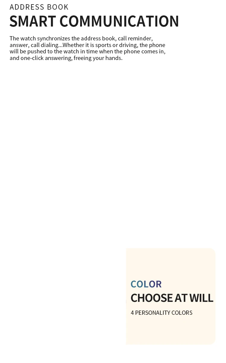 Система требует: android5.0 + / ios10.0 +Основной ChipsHs6621Память браслета: 128 мBluetooth-совместимый чип: AB5376A2Версия Bluetooth: 5,2Экран: 1,77 inch 320 * 380-TFTЕмкость аккумулятора: 200 мАчВремя работы в режиме ожидания: 7 днейВремя использования: 2-3 дня
