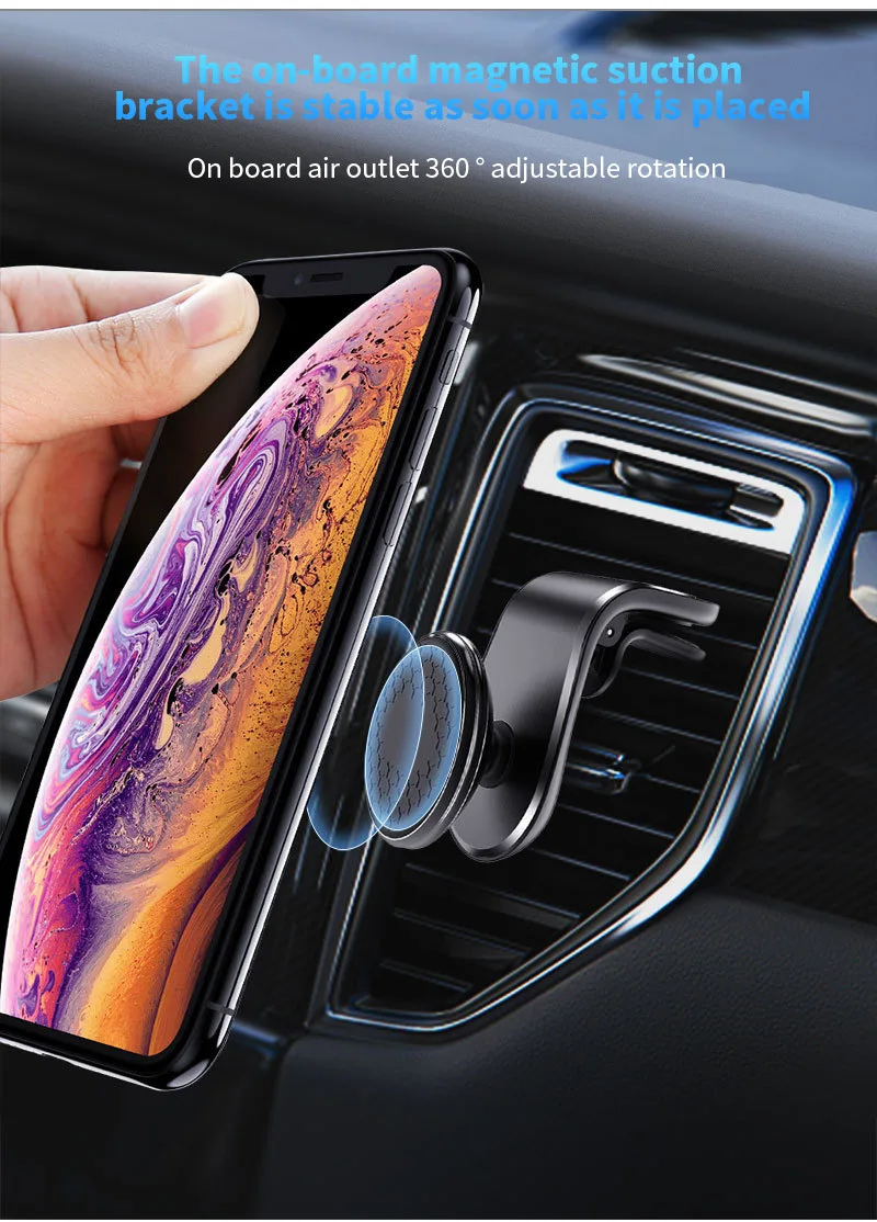 Автомобильный Магнитный кронштейн на присоске L-образный металлический крепкий магнитный держатель на присоске для автомобильного воздуховыпускного отверстия