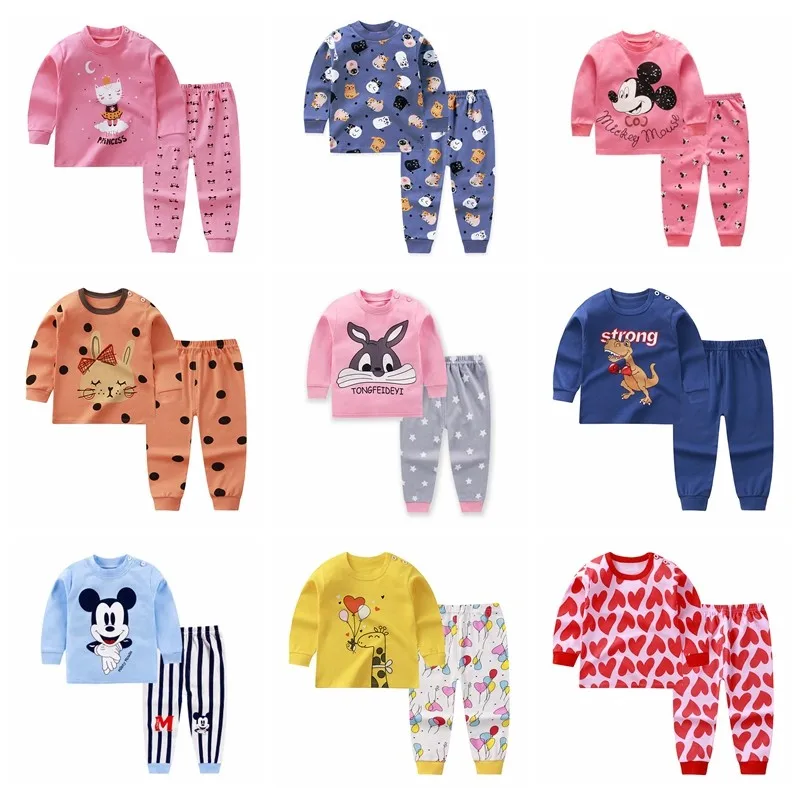Комплект детской одежды для сна из 100% хлопка, осенне-зимний комплект детского нижнего белья, модный наряд для маленьких девочек с принтом, повседневная домашняя одежда
