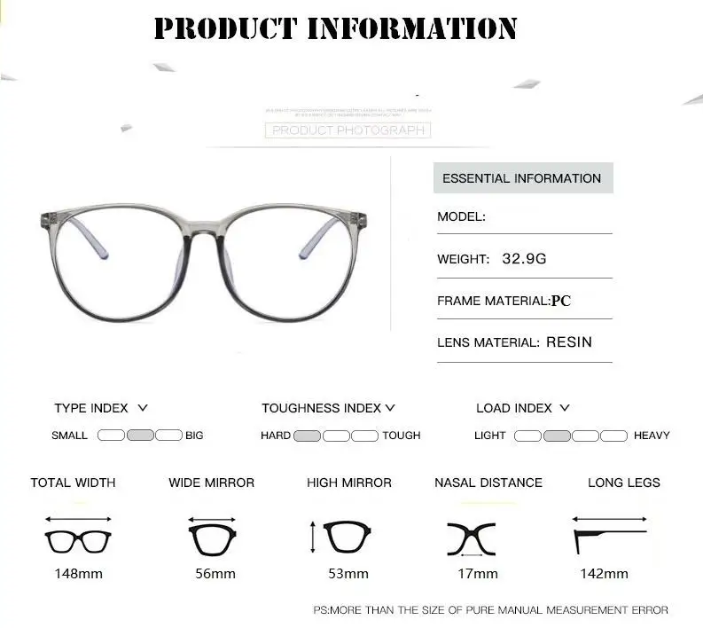 Прозрачный Анти-синий светильник очки большие очки блокиратор лучей...