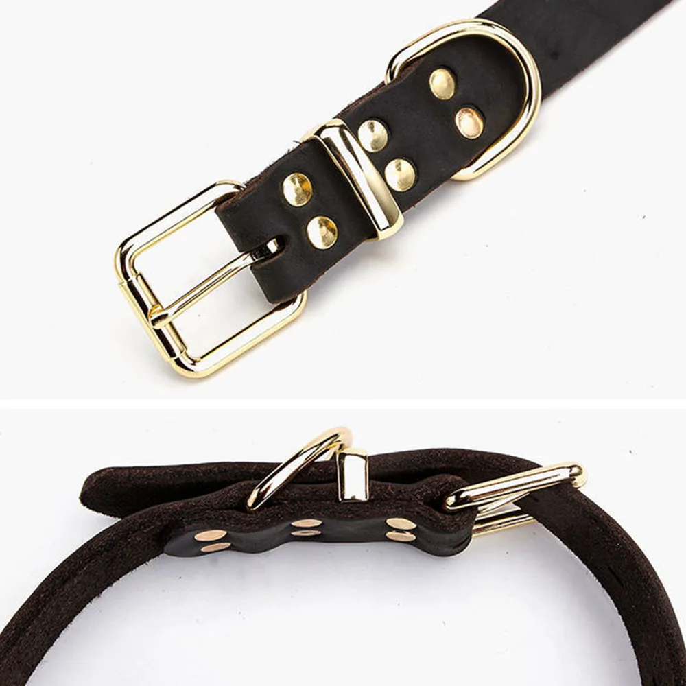 Ошейник для собак из натуральной кожи, D-образное кольцо премиум класса с пряжкой из золотистого сплава, регулируемые ошейники для маленьких и больших собак