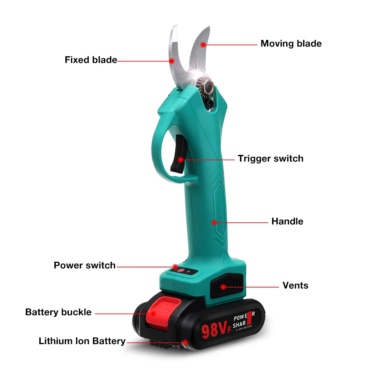 Электрический беспроводной секатор для резки фруктовых деревьев, 98 в, с литий-ионной батареей 9700 мАч