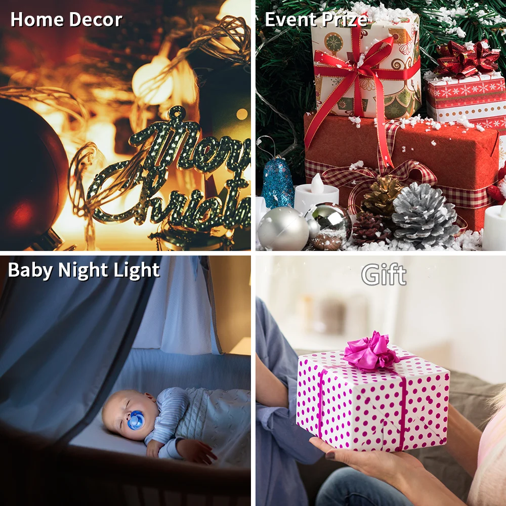 ⭐7 цветов: красный, зеленый, синий, желтый, голубой, фиолетовый и белый⭐Режим касания: Нажмите кнопку касания один раз, чтобы изменить один цвет, если Нажмите 8 раз, цвета будут изменены автоматически. Удерживайте переключатель вниз в течение 2 секунд, чтобы выключить.Режим дистанционного управления (16 цветов): пульт дистанционного управления с включением/выключением, 16 цветов, регулируемая яркость, режим вспышки, плавный режим.⭐Низкое потребление, не будет жарко после долгой работы, высококачественный светодиодный, мягкий и не ослепляющий, не мерцающий, не повредит глаза.Ночные светильники для детей, девочек, мальчиков, малышей, женщин. Широко используется в различных условиях, как декоративные светильники для дома, спальни, детской комнаты, гостиной, бара, магазина, кафе, ресторана, вечерние, Клубные и в любом месте. Или в качестве подарочных идей или гаджетов для детей, девочек, мальчиков, малышей, женщин.