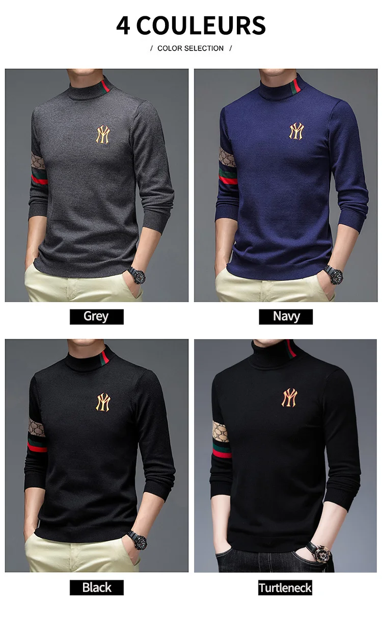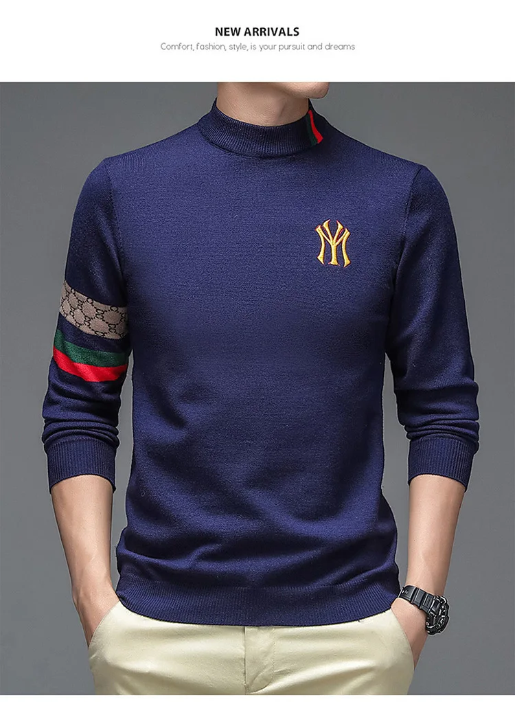 Свитер с воротником хомут, роскошные вязаные свитера с вышивкой, мужские пуловеры высшего класса с ложным воротником, новинка 2022, Повседневная Мужская Дизайнерская одежда