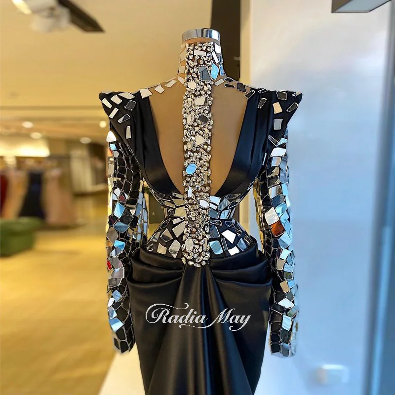 Элегантное черное платье с юбкой-годе для черных девушек с высоким воротом и длинным рукавом, официальное платье