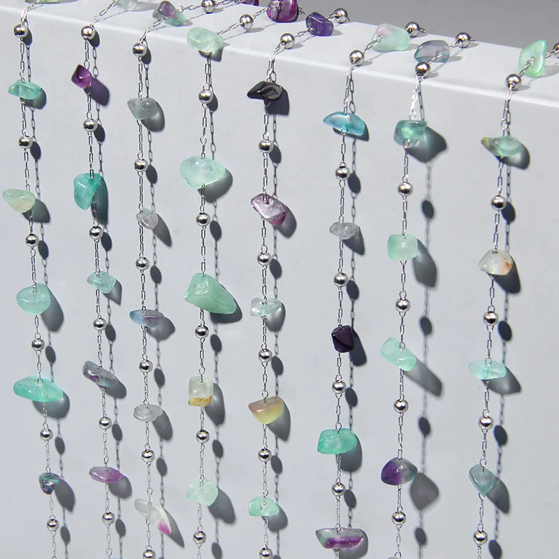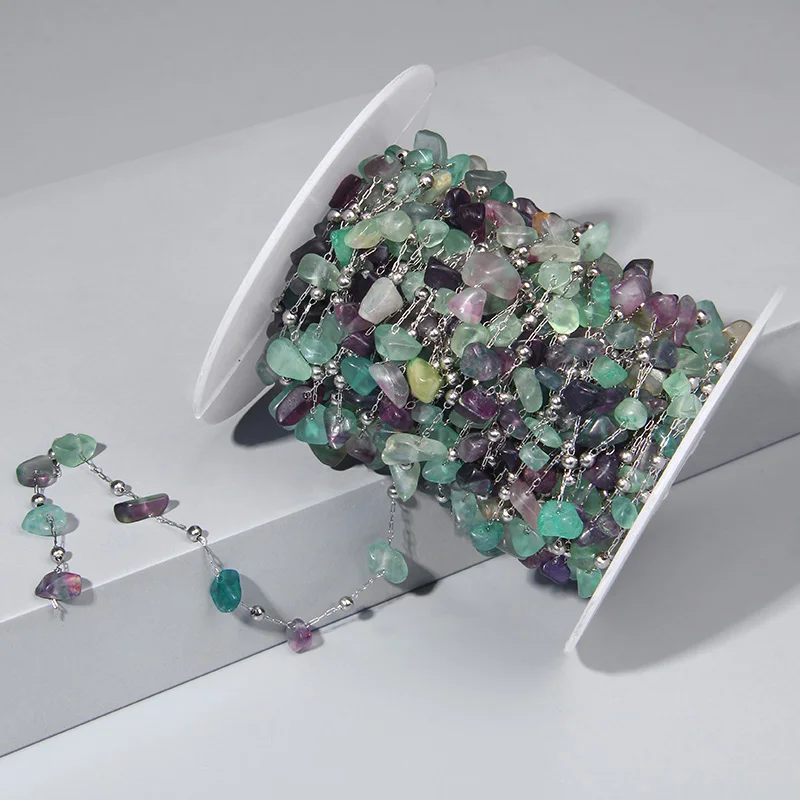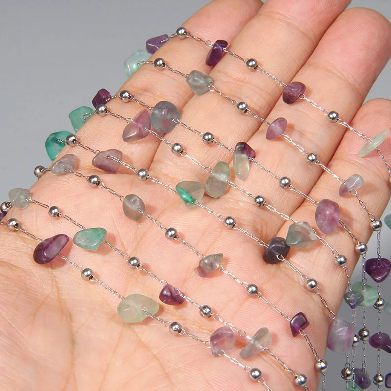 _ Металлическая цепочка из флюорита с камнями и бусинами, металлические цепочки из нержавеющей стали для ювелирных изделий, ожерелий, браслетов, аксессуары ручной работы