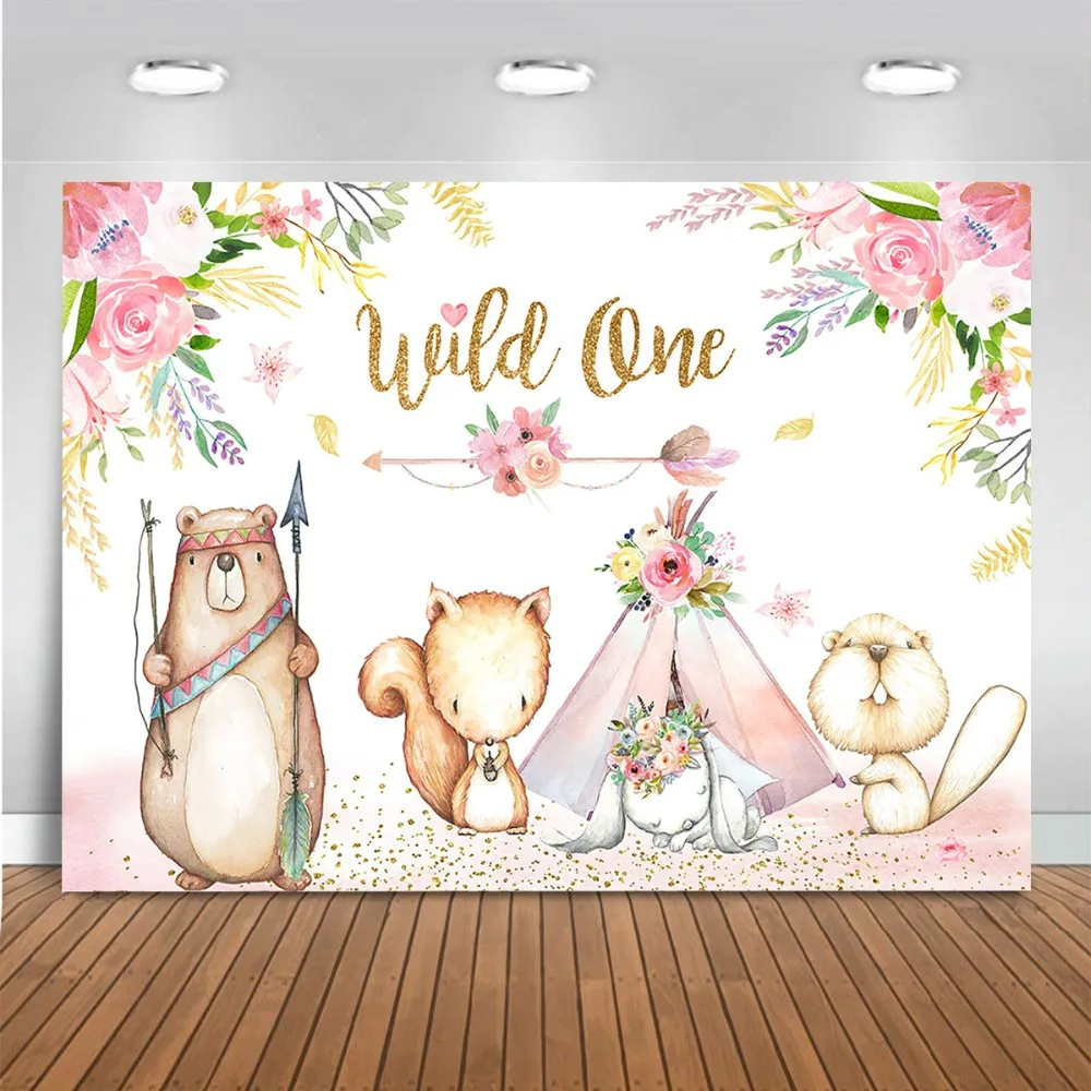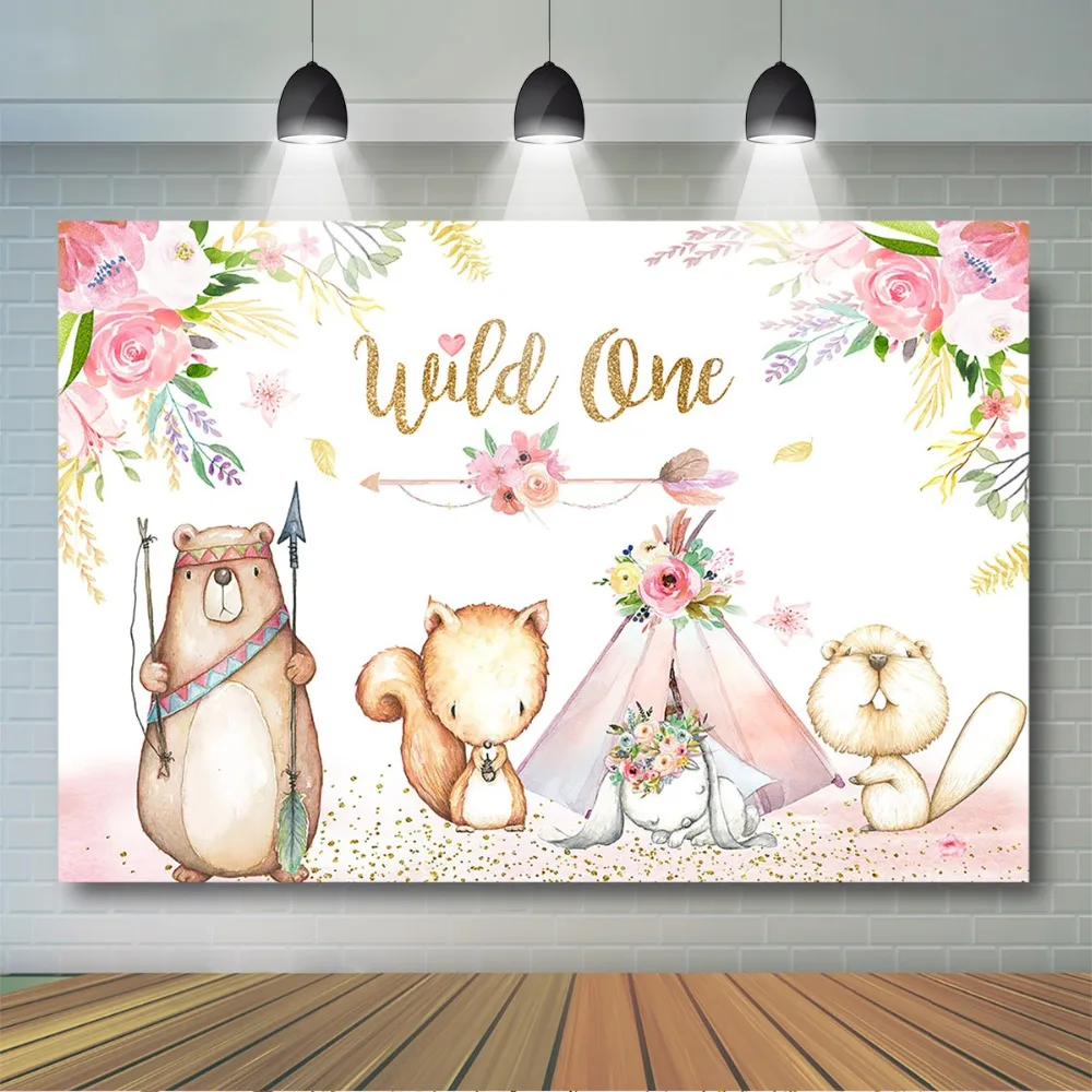 Фон Mocsicka Wild One для фотосъемки с изображением лесных животных в стиле бохо