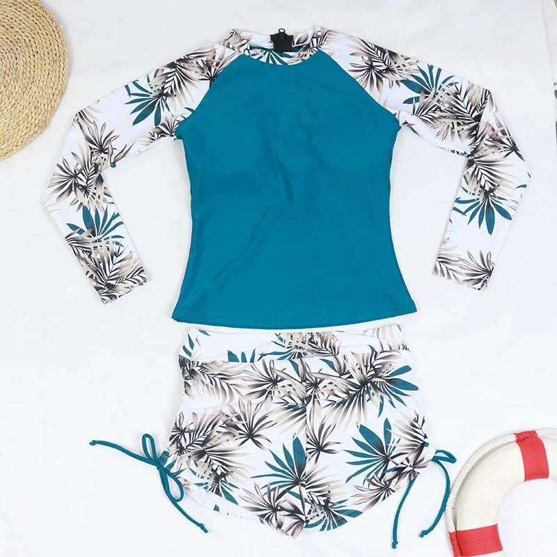 Женский купальник для серфинга с топом и принтом, новинка 2022, купальник с длинными рукавами, рубашки для велоспорта, купальный костюм из двух предметов