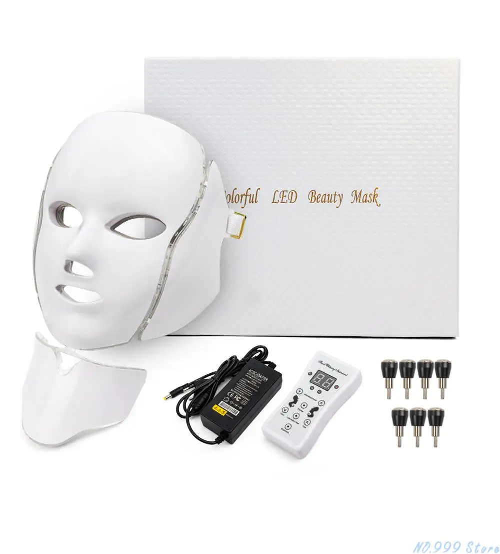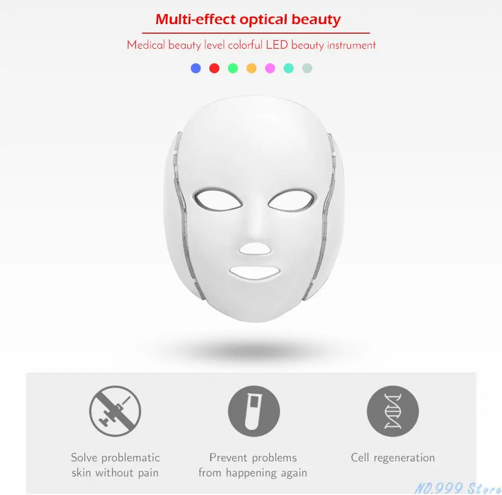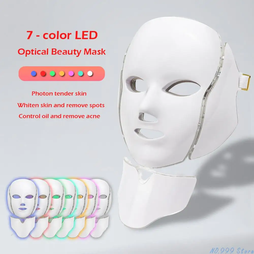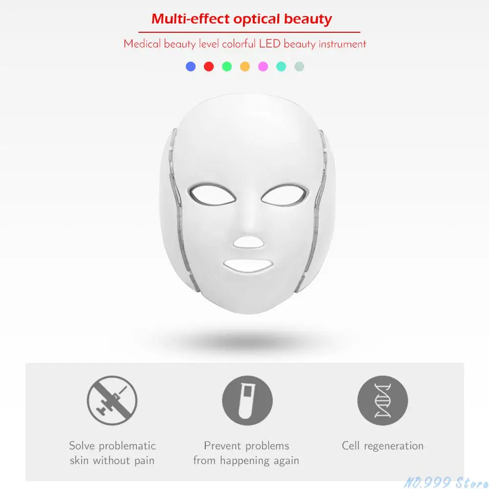 Светодиодсветильник маска для лица с 7 цветами для омоложения кожи шеи и подтяжки