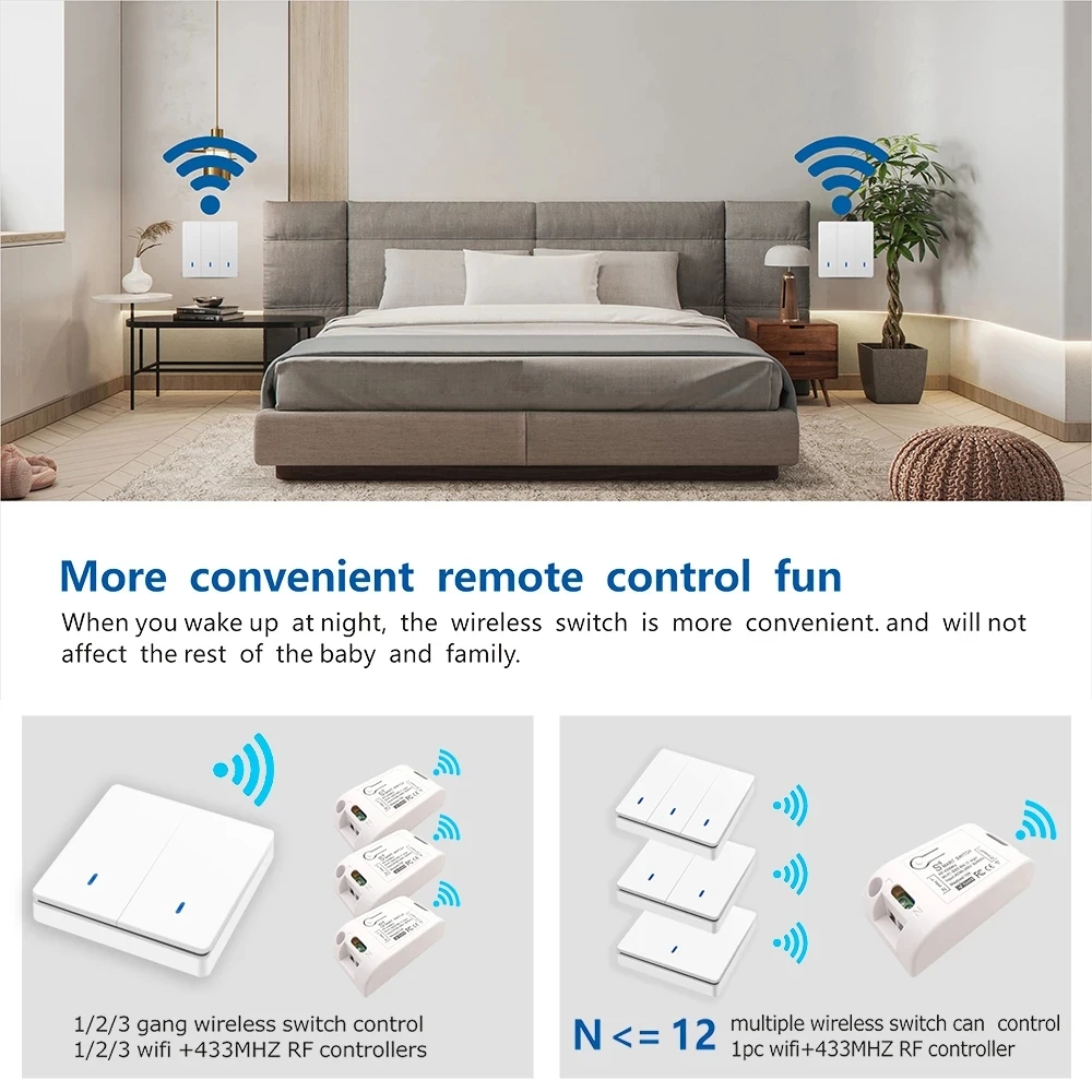 Когда вы просыпаетесь ночью, беспроводной переключатель будет тихим, чтобы контролировать ВКЛ/ВЫКЛ. Так что это не повлияет на остальную часть ребенка и семьи.