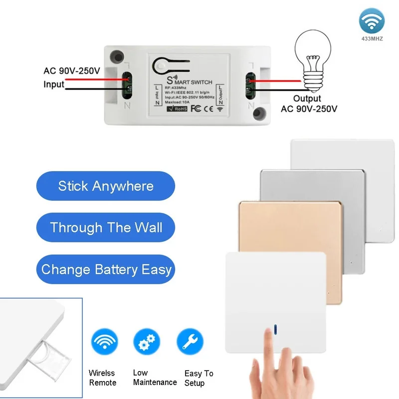 Беспроводное управление переключателем + Голосовое управление + управление приложениемДистанционное управление 433 МГц