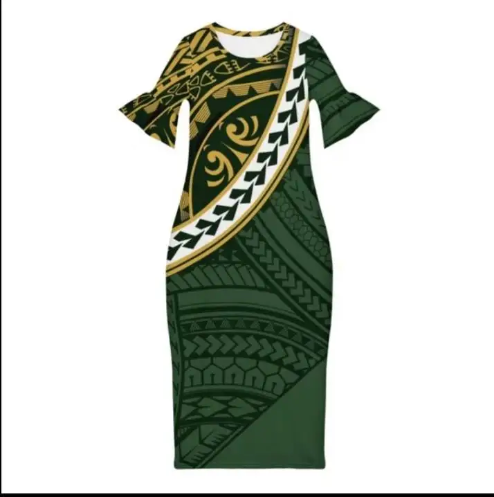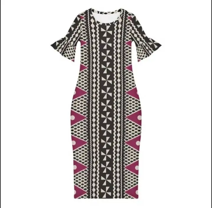 Оптовая цена, модное красное платье с коротким рукавом, приталенное платье с открытыми плечами, полинезийское племенное платье из мягкой ткани для торжественных случаев