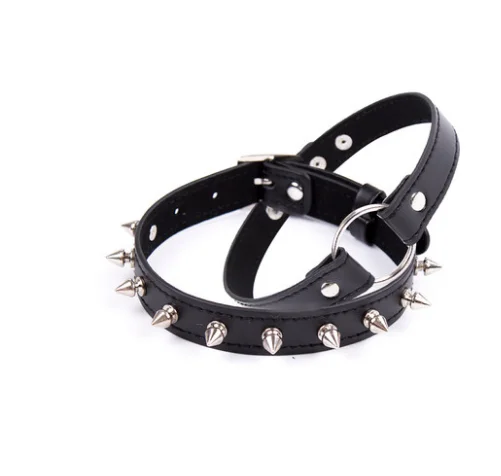 Эротические аксессуары для БДСМ, регулируемый воротник из искусственной кожи с круглым стальным кольцом