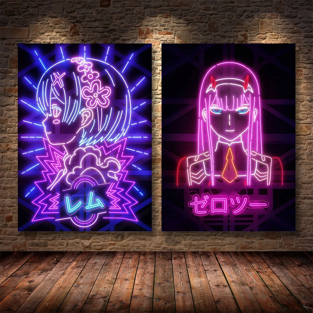 Японский аниме неоновый постер космический ковбой Killua Дракон Девушка нуль два Rem девушка горничная Картина на холсте настенное искусство картина домашний декор