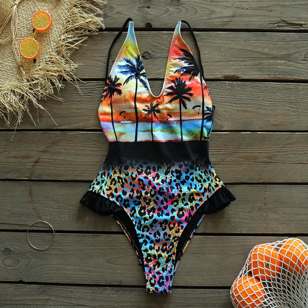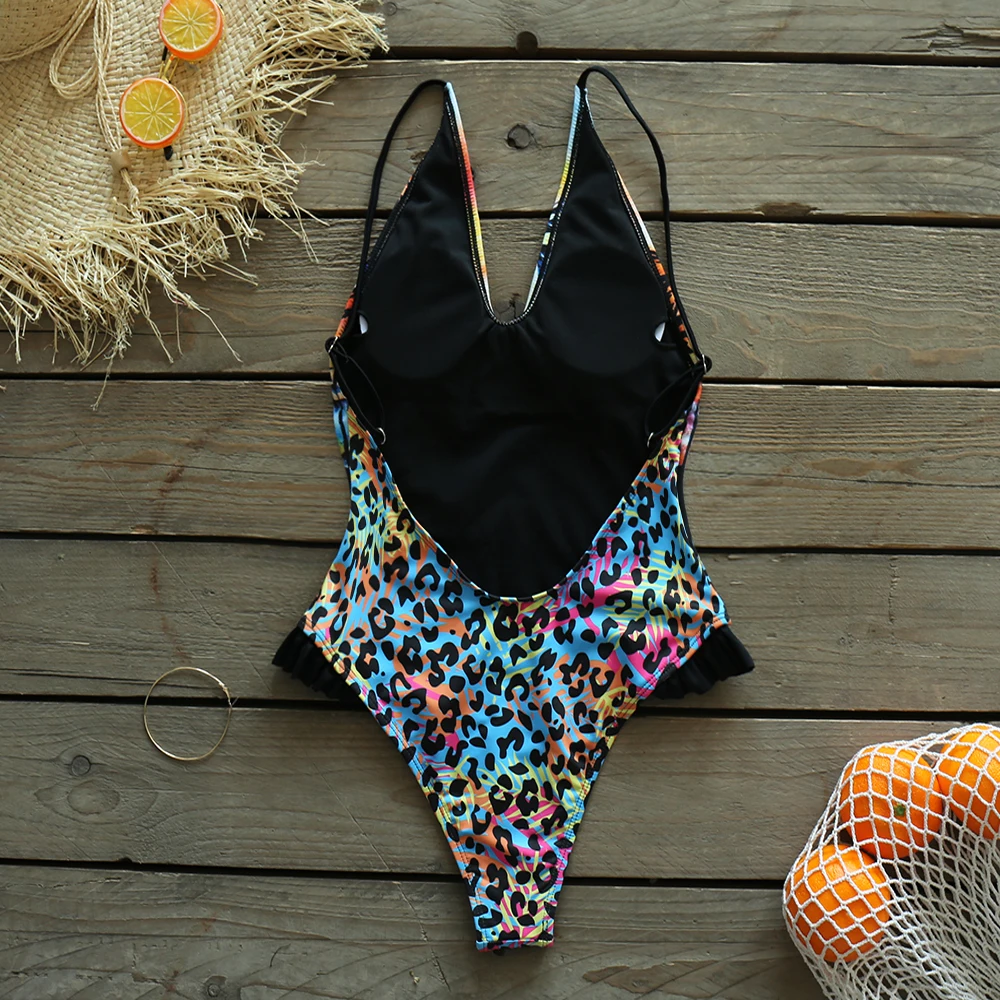 Цельнокроеный купальный костюм 2022, сексуальная женская одежда для плавания, яркая пляжная одежда с леопардовым принтом, купальный костюм, монокини с оборками для плавания