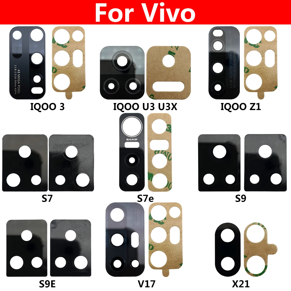 Оригинальный стеклянный объектив задней камеры с наклейкой для Vivo IQOO 3 U3 Z1 S7 S9 S9e V17 X21 X50 Pro Y9S Y20 Y31 Y51 Y51S Y73S Y93