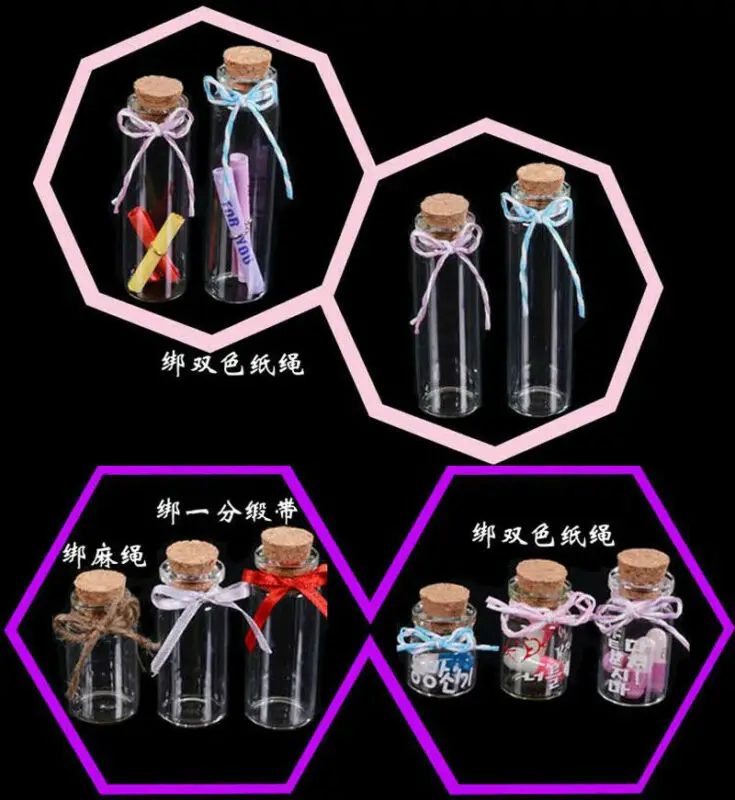 10 шт., маленькие стеклянные флаконы с пробкой, 13x24 мм, 16x35 мм