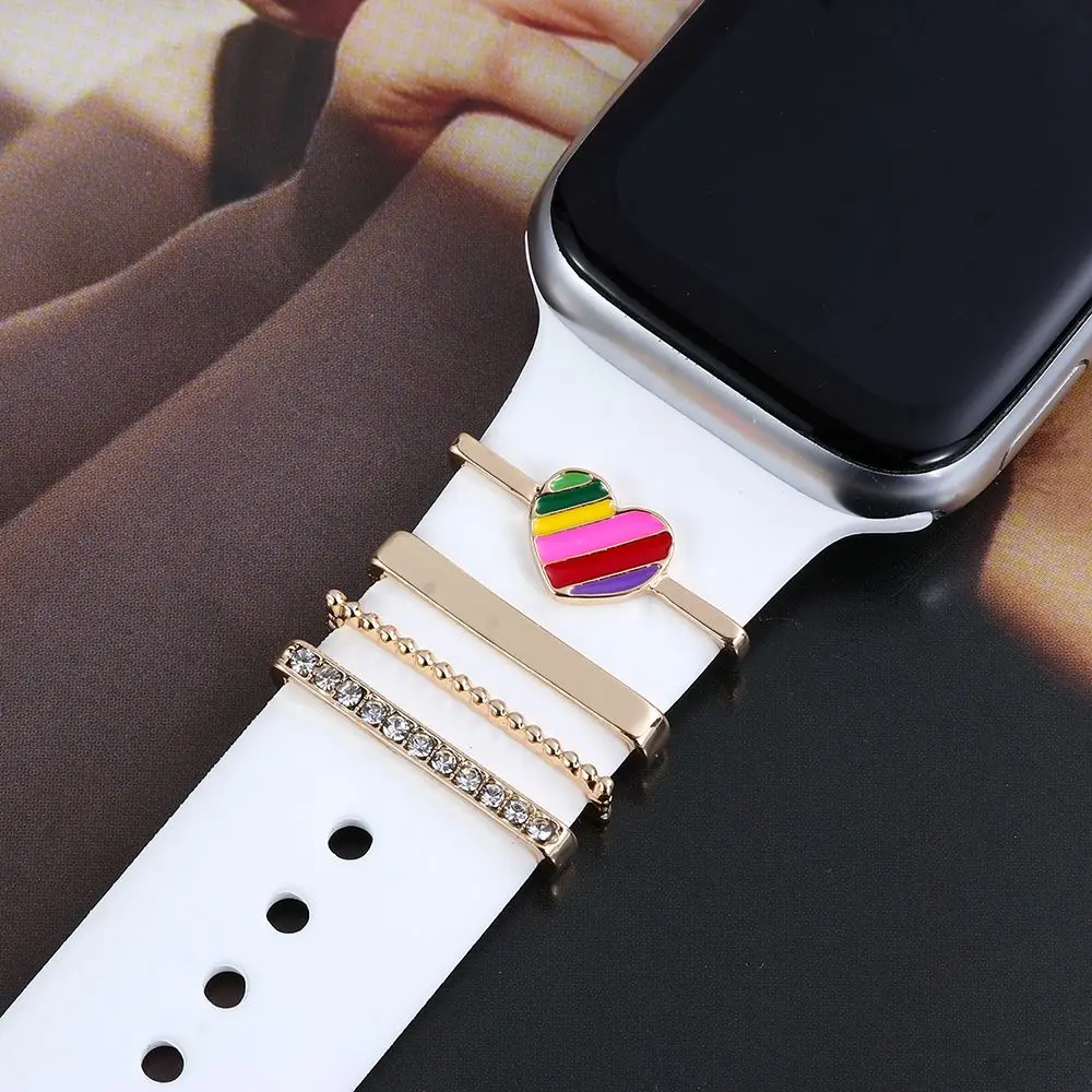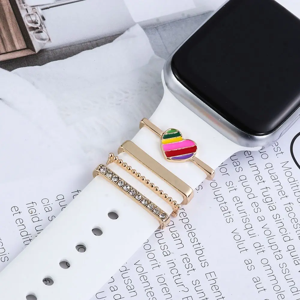 Металлические подвески, декоративное кольцо для Apple Watch, ремешок с алмазным орнаментом, силиконовый ремешок для умных часов, аксессуары для iwatch, браслет