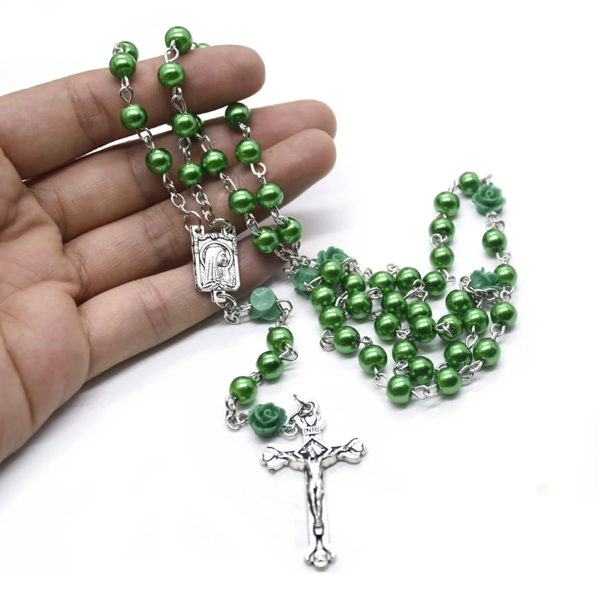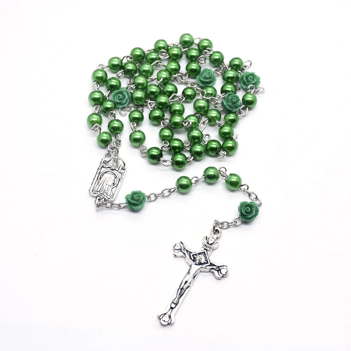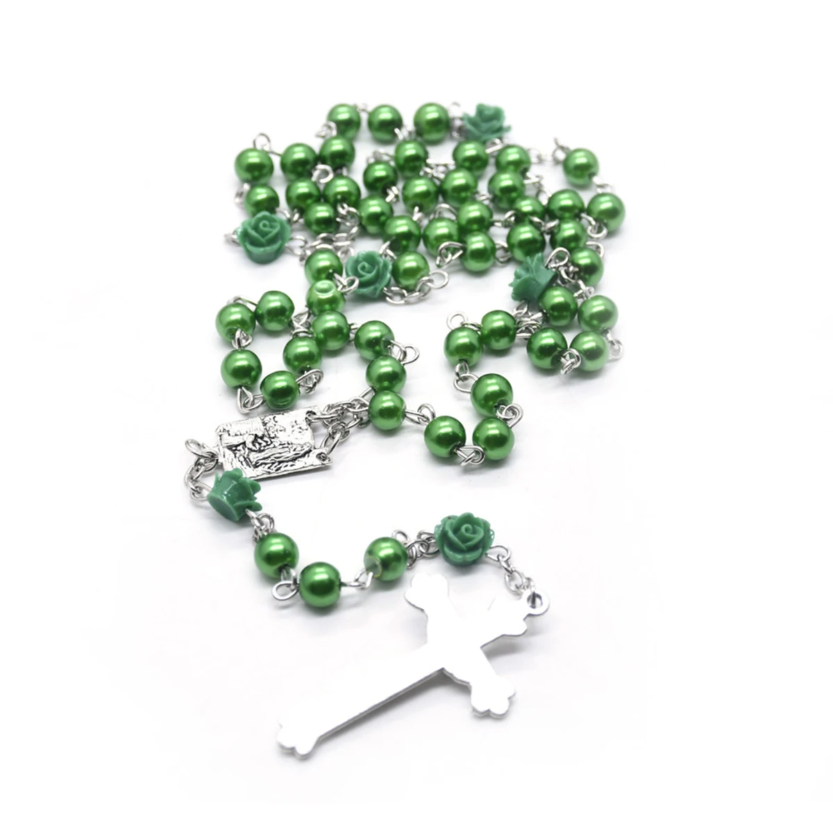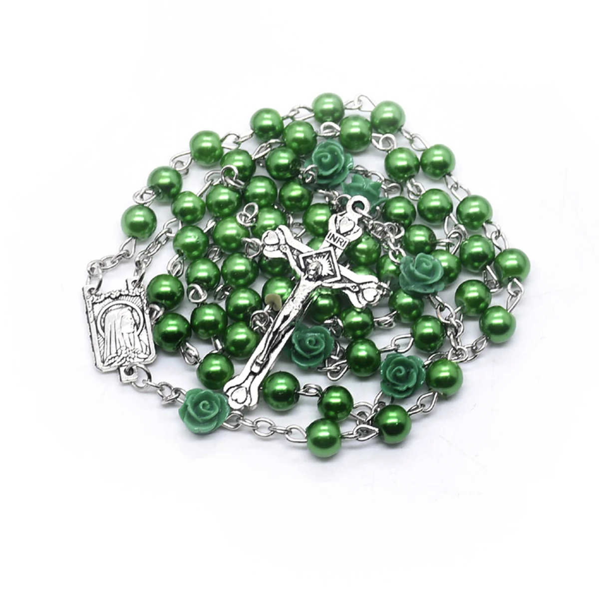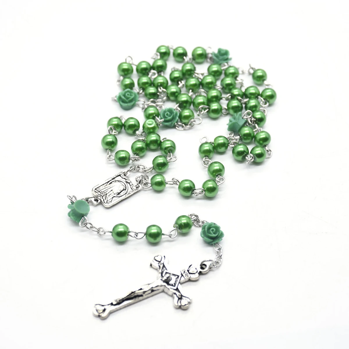 Иисус религиозный крест, Дева Мария, ожерелье с кулоном, зеленые искусственные жемчужины, четки, ожерелье, католические молитвенные украшения