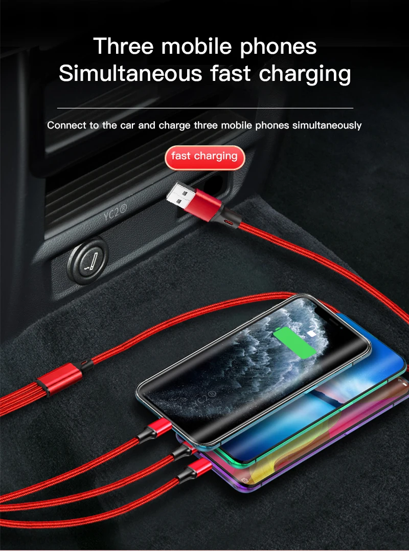 Линия передачи данных 3 в 1 USB кабель для iPhone Samsung Xiaomi по...