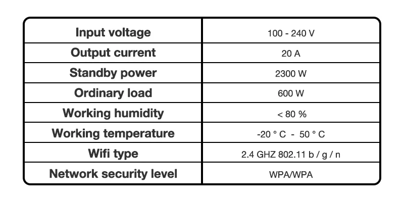 Если мощность превышена, мощность будет автоматически отключена для защиты электроприборов и максимального срока службы.