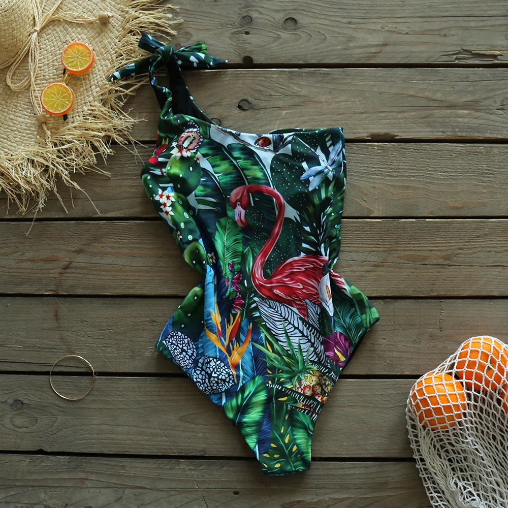 Цельный купальный костюм 2022, пикантная одежда для плавания на одно плечо, пляжная одежда с принтом, купальный костюм, винтажный Монокини в стиле ретро