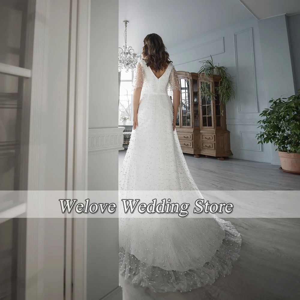 Женское Свадебное платье с разрезом, элегантное платье с V-образным вырезом, украшенное бусинами, длина в пол, 2021