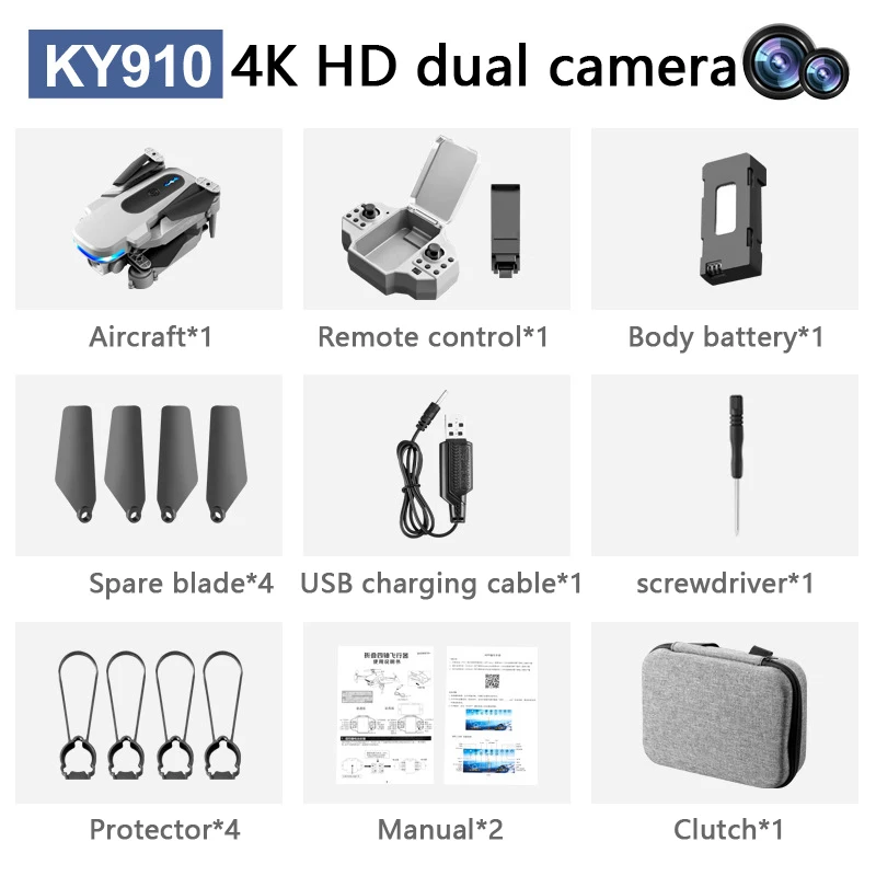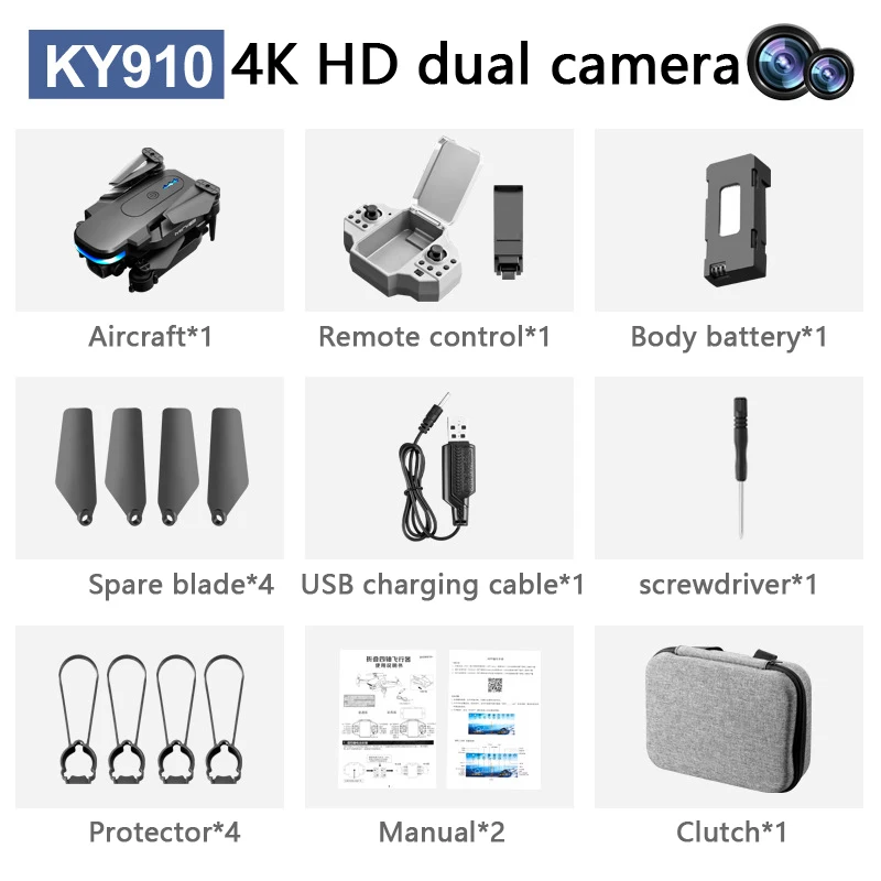 Мини-Квадрокоптер складной с двойной камерой 4K HD, Wi-Fi
