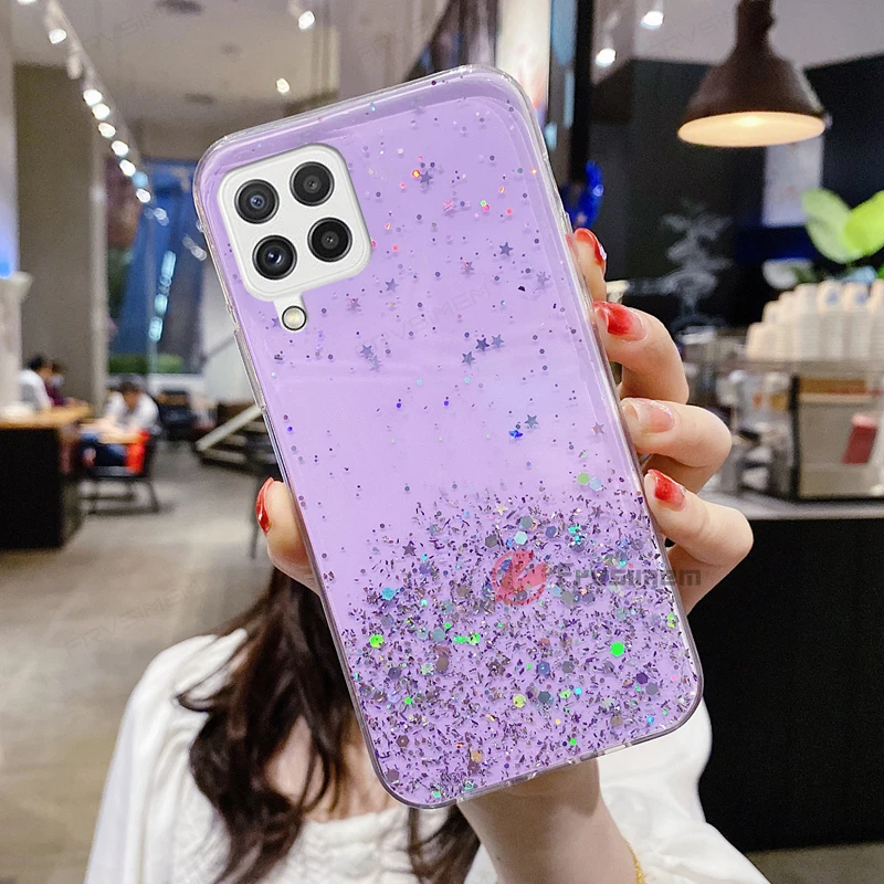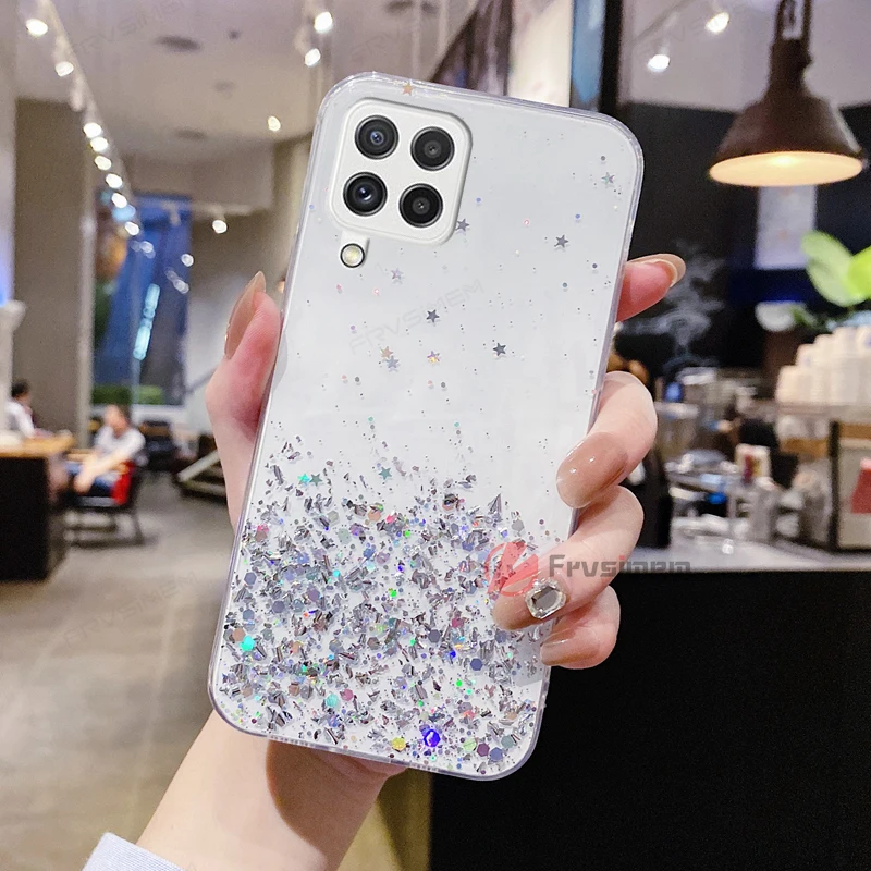 Блестящий Мягкий чехол для телефона с блестками и звездами для девушек Samsung Galaxy M12 M22 M32 M52