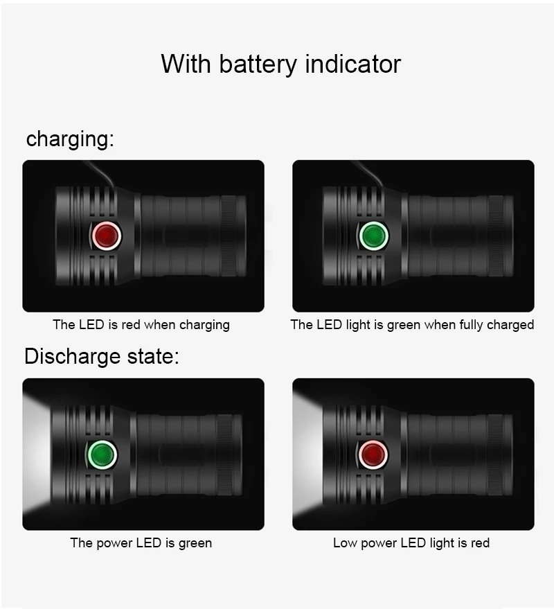 Переключатель:Нажмите на переключательДиапазон:300-1000 метровАккумулятор:Встроенный литиевый аккумулятор 4*18650Стойло:Сильный светильник-слабый светильник-вспышка burst [Длительное нажатие в течение 2 секунд для выключения]Водонепроницаемость:IPX5 [ежедневно водонепроницаемый]Материал:Алюминиевый сплавУгол луча:60 °Метод зарядки:Микро порт для зарядкиВход и выход:5V1AРазмер:118 мм * 61 мм * 50 мм