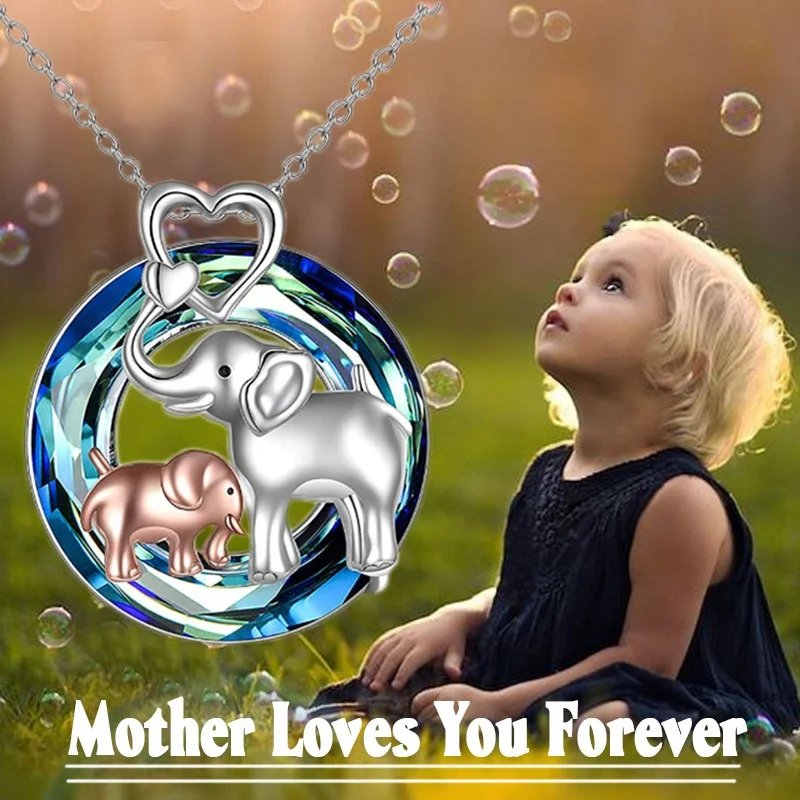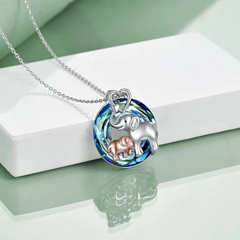Модное изысканное ожерелье в виде слона подвеска с животными любовью мамонтом мамой и голубыми круглыми кристаллами ювелирные изделия