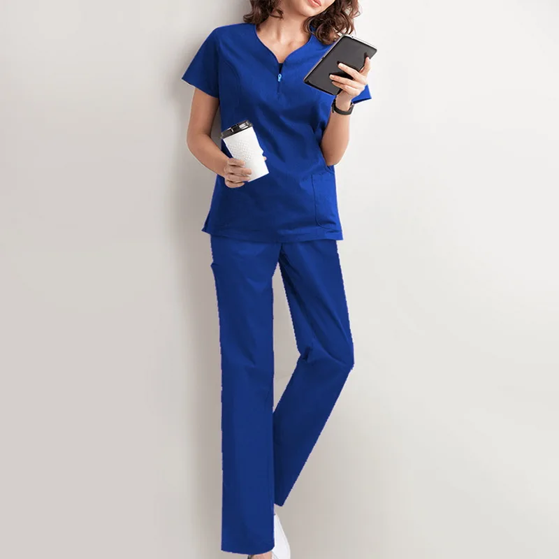 Однотонный женский костюм для медсестры с коротким рукавом и V-обра...