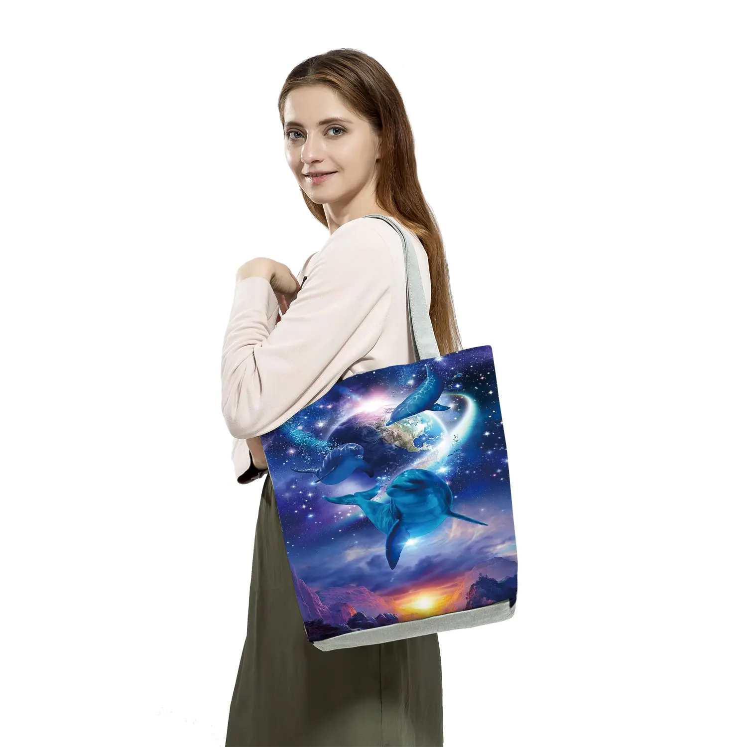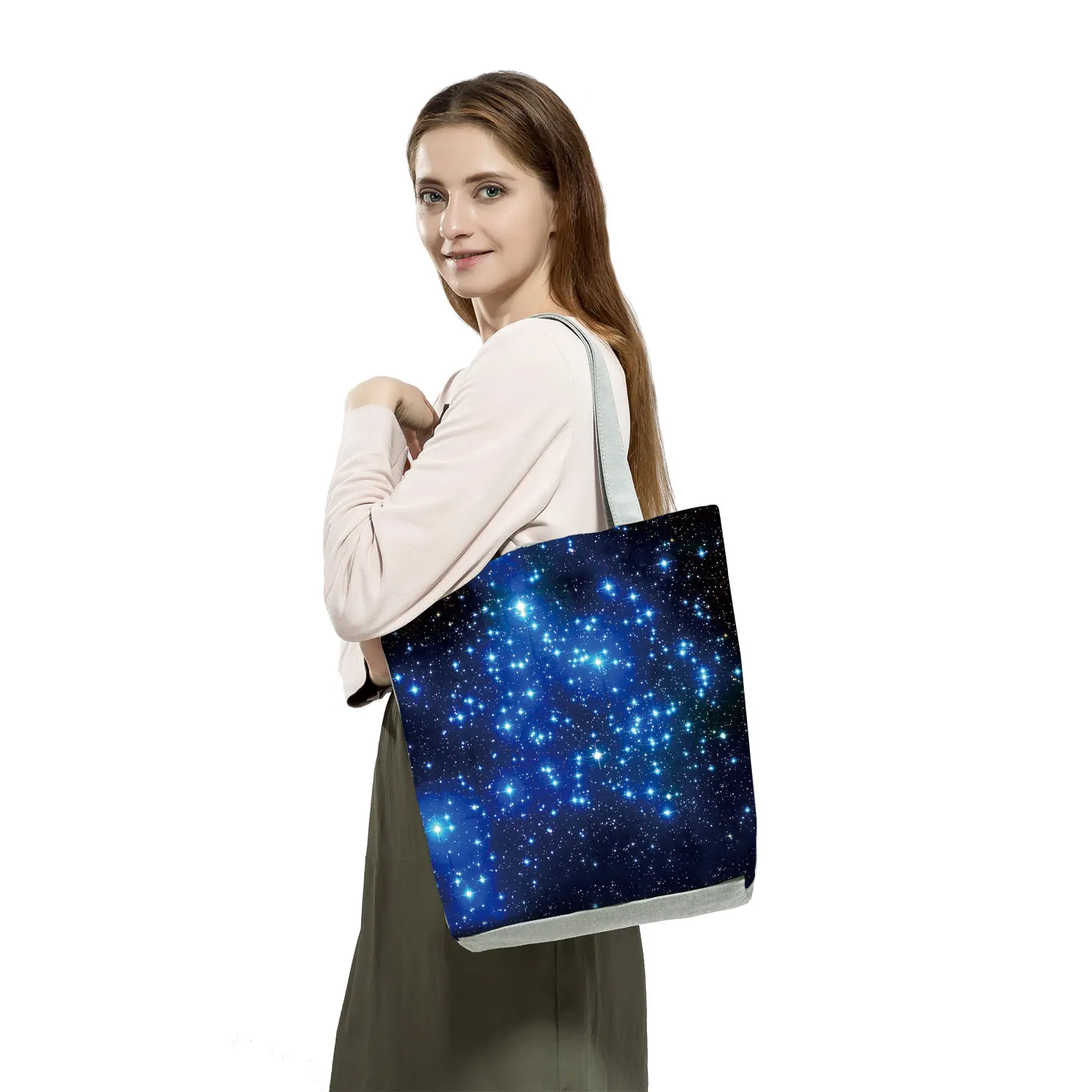 Повседневные сумки с принтом звездного неба, многоразовая сумка для покупок, женская сумка-тоут с большой емкостью, женская сумка на плечо с индивидуальным узором